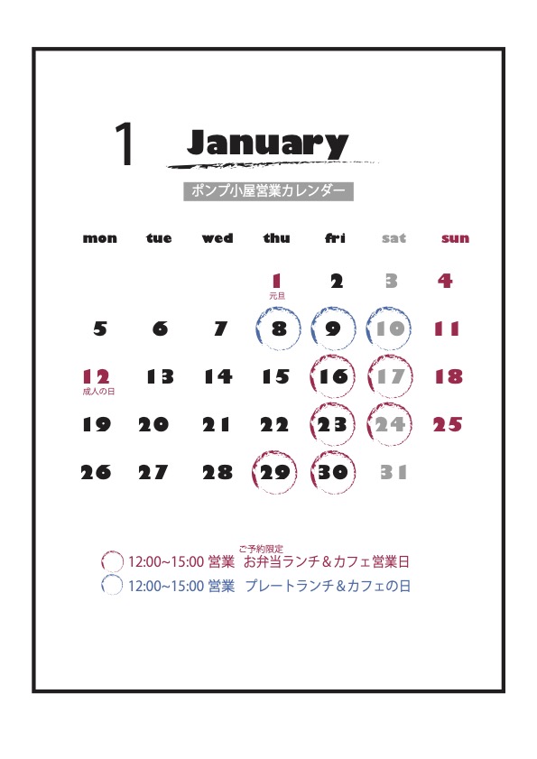2026年1月のポンプOPEN日のご案内