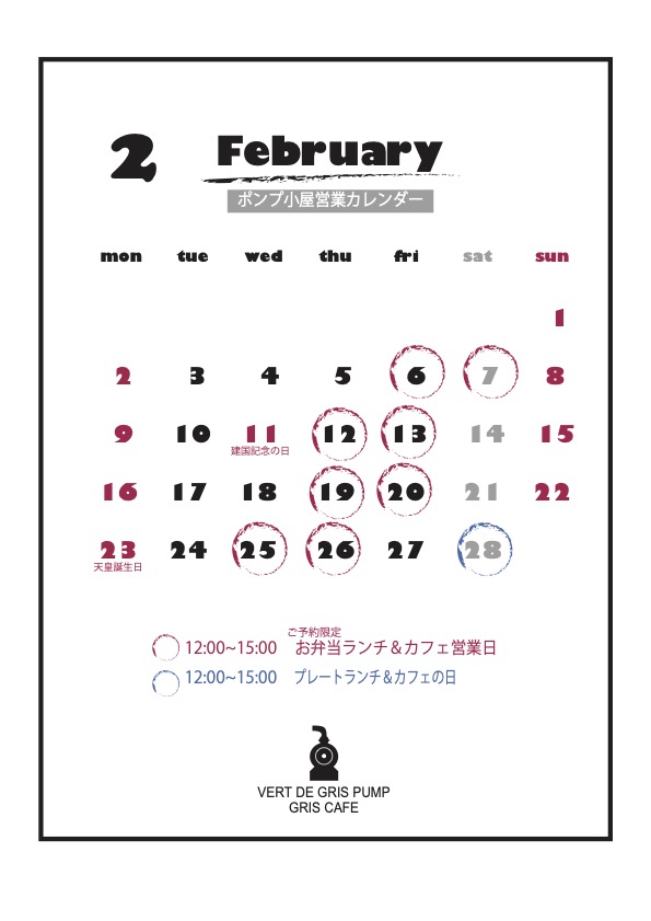 ポンプ小屋Cafeは以下の日程で営業いたします。