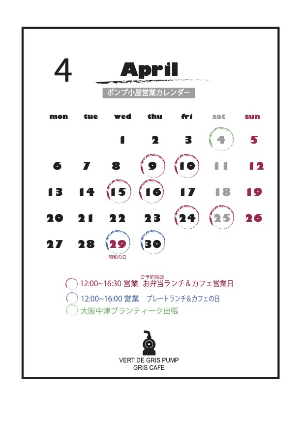 ポンプ小屋Cafeは以下の日程で営業いたします。